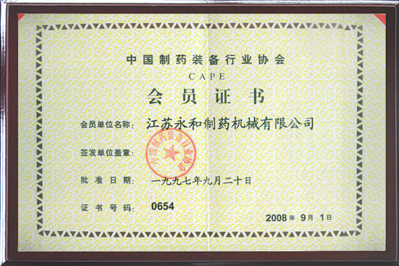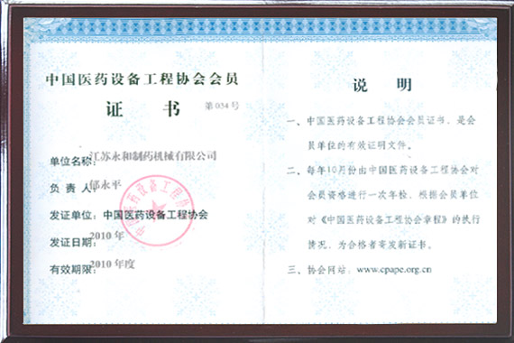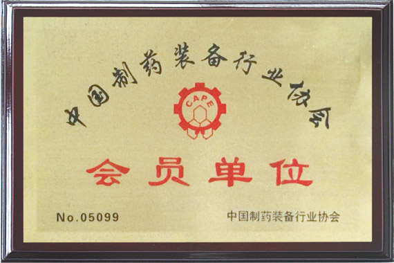 • 中國製藥裝備行業協會會員證書