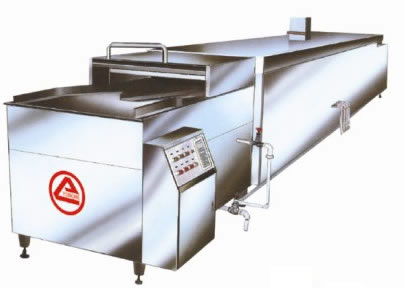 將瓶裝入周轉盤(pán)後經預熱噴(pēn)頭(tóu)衝洗,自動進入水槽之(zhī)中蒸煮滅菌(配上超聲(shēng)波效果更佳)。具有滅菌、清(qīng)洗效果好,生產效(xiào)率高,瓶子破碎率低等優點。經滅菌、烘幹後的產(chǎn)品瓶外觀光滑、清潔,表麵沒有水跡,不生黴菌,易保管,並便於貼(tiē)簽牢固,是口(kǒu)服液、糖漿生產線中不可缺少的滅菌、瓶外清洗設備。