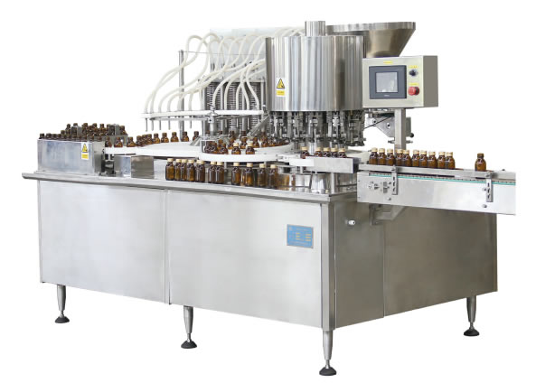 本機(jī)符合“cGMP”要(yào)求,適用於各種規格的(de)玻璃瓶、塑料瓶(píng)的(de)灌裝、上蓋、封口。是液(yè)體灌裝生產線中的主機。