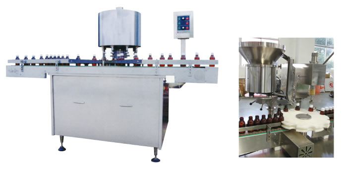 該機符合“GMP”要求,廣泛用於製藥工業,能對塑(sù)料瓶、玻璃(lí)瓶自動完成送瓶、上蓋、旋(xuán)蓋等動作。體積小,效(xiào)率高,旋蓋質量高。主機采用日本三菱變頻器調速(sù),行(háng)星式旋轉上蓋,可連續對輸送過來的瓶子經氣(qì)動裝置夾緊後進行旋蓋。整機噪聲小,運轉(zhuǎn)平穩,旋蓋不鬆(sōng)動。調換少(shǎo)數零件可實現多規格玻璃瓶(píng)或塑料瓶旋蓋生產。本機既可單機使用,又可聯入生產線。