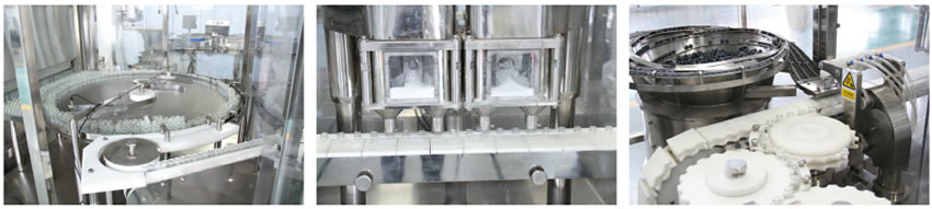 清洗采(cǎi)用(yòng)超聲波粗洗,先進的特製瓶鬥載瓶、模塊化清洗,十一道水氣交替衝洗,機械式推出瓶;幹燥滅菌采用熱風循環,獨有的熱膨脹連接,水冷循環(huán)冷卻,烘箱網帶在線清洗;分裝機(jī)采用不鏽鋼帶送瓶(píng),伺服(fú)電機控製四頭螺(luó)杆分裝,機械手上塞,可在線取樣,加粉及加塞采(cǎi)用無菌對接等先進工藝。